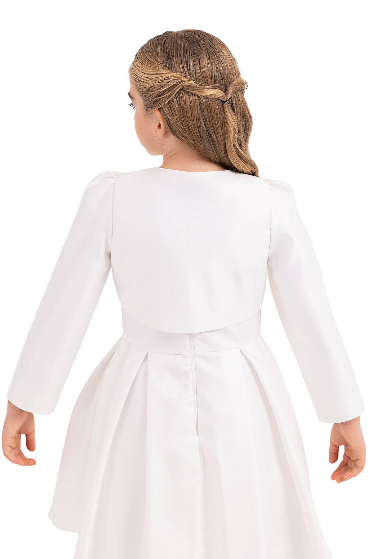 البوليرو الذي يُعتبر قطعة إنقاذ لكل موسم هو نجم خزانات الملابس. بوليرو ساتان غير لامع بأكمام مشدودة من الكتف، مزود بإغلاق من خطاف وحلقة عند الرقبة الأمامية. بوليرو الأطفال المتلألئ بتطريزات من اللؤلؤ والحجارة على الرقبة الأمامية مريح وصحي.