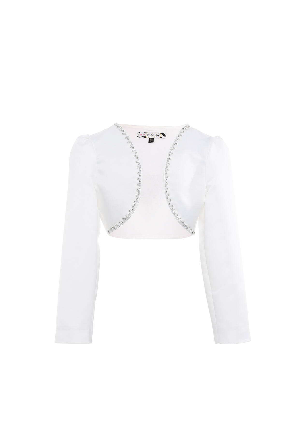 البوليرو هو الإضافة الأنيقة والعملية لموسم الصيف. تم تصميم بوليرو الفتيات المزخرف عند الكتف باستخدام قماش الساتان غير اللامع. هذا البوليرو المزخرف عند الكتف جاهز ليضفي بريقًا على الصيف بتطريزات لؤلؤية وحجرية على الجزء العلوي منه من الجانبين.