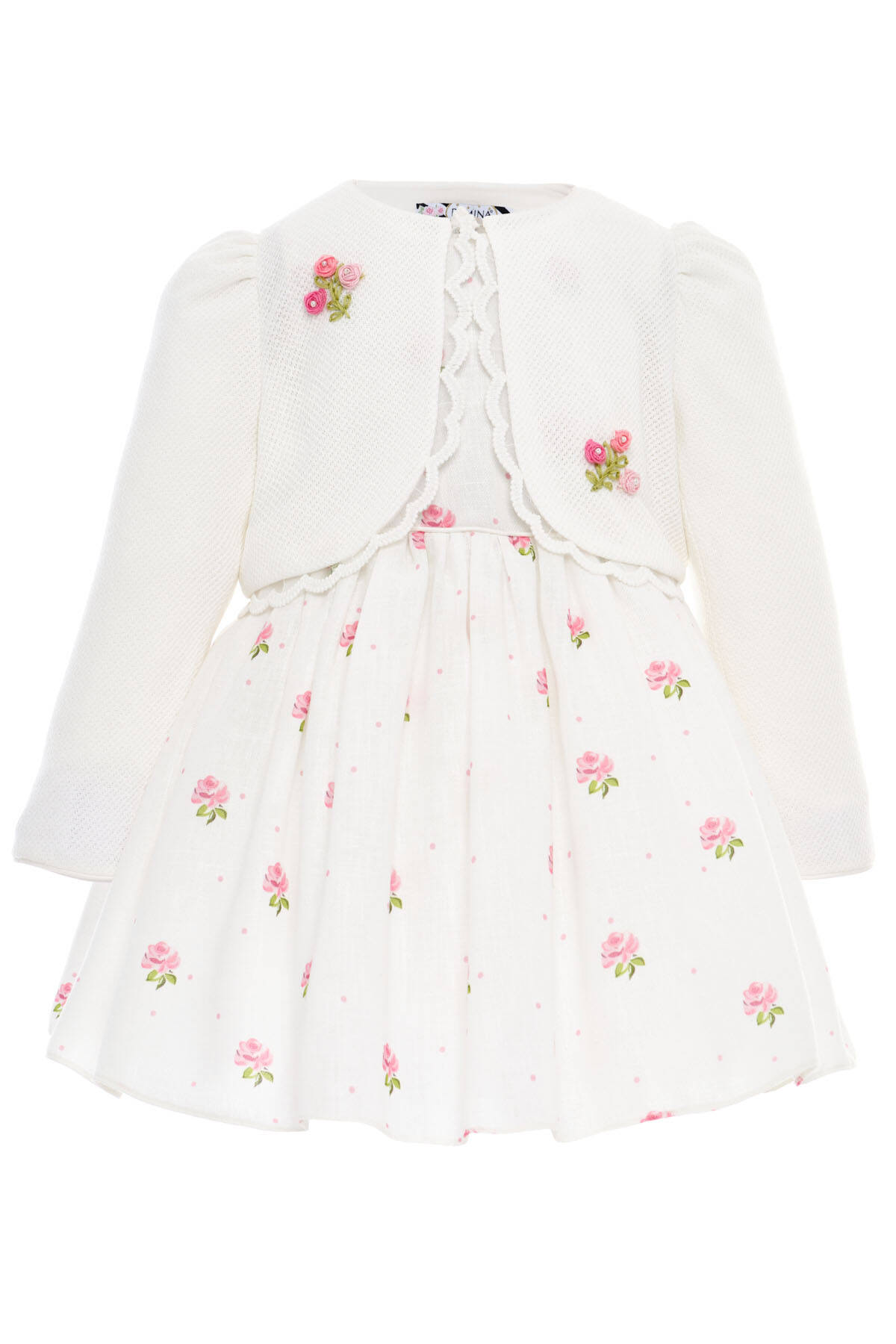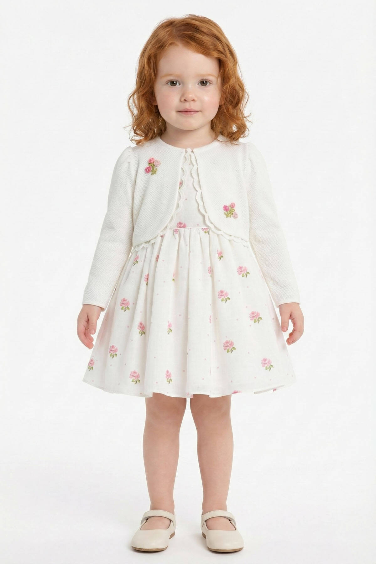 فستان وجاكيت مطرز بالورود للبنات من باودر بيبي، مقاسات من 6 إلى 24 شهر
