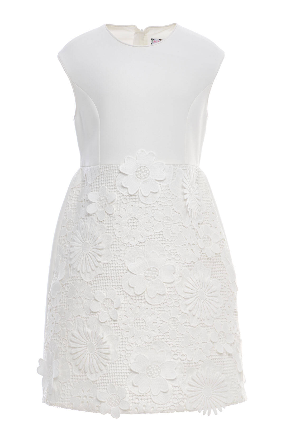طقم فستان وسترة من الدانتيل الزهري للبنات باللون البيج، مقاس 8-15