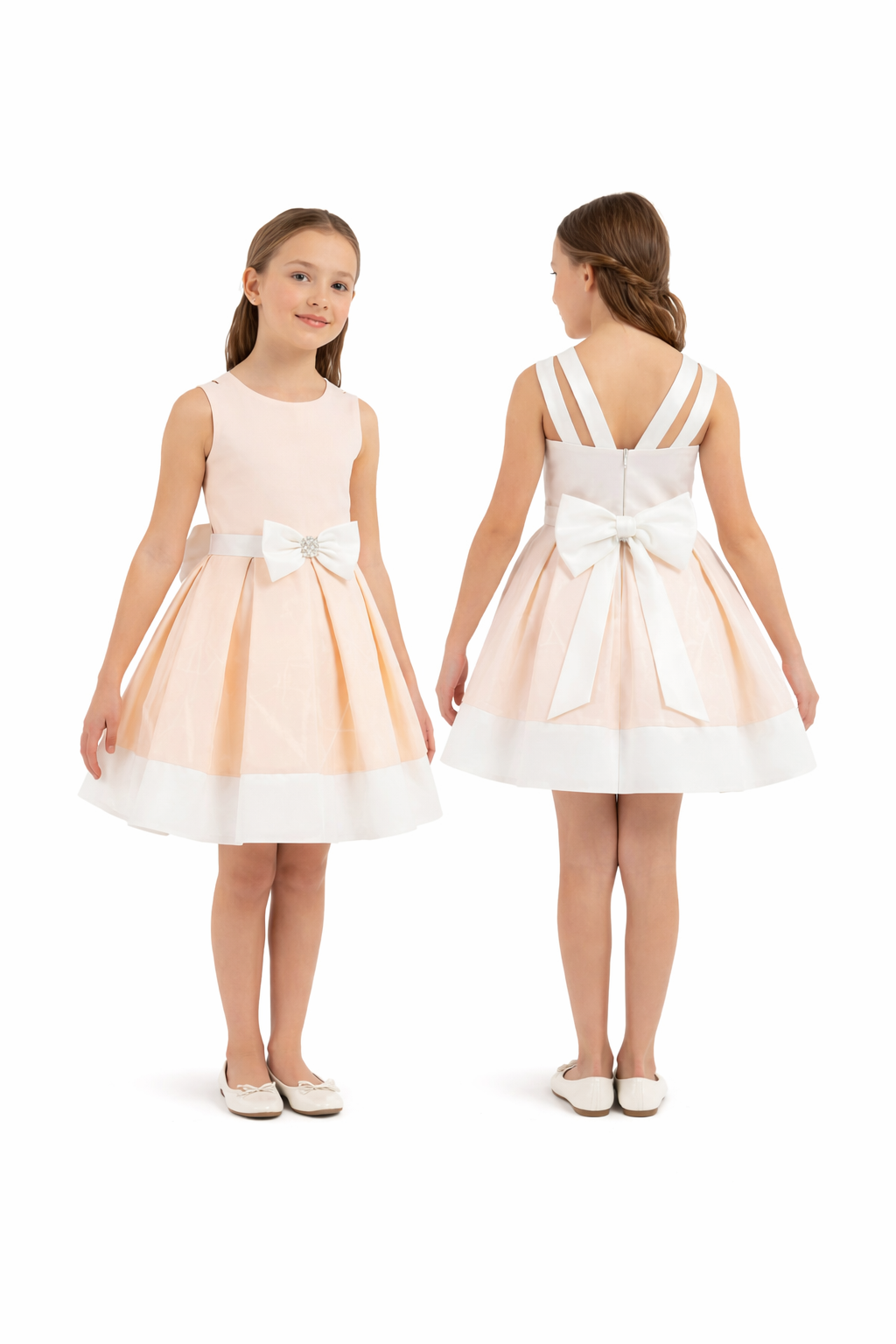 فستان أنيق لون قرنفل للبنات (من عمر 8 إلى 15 سنة)