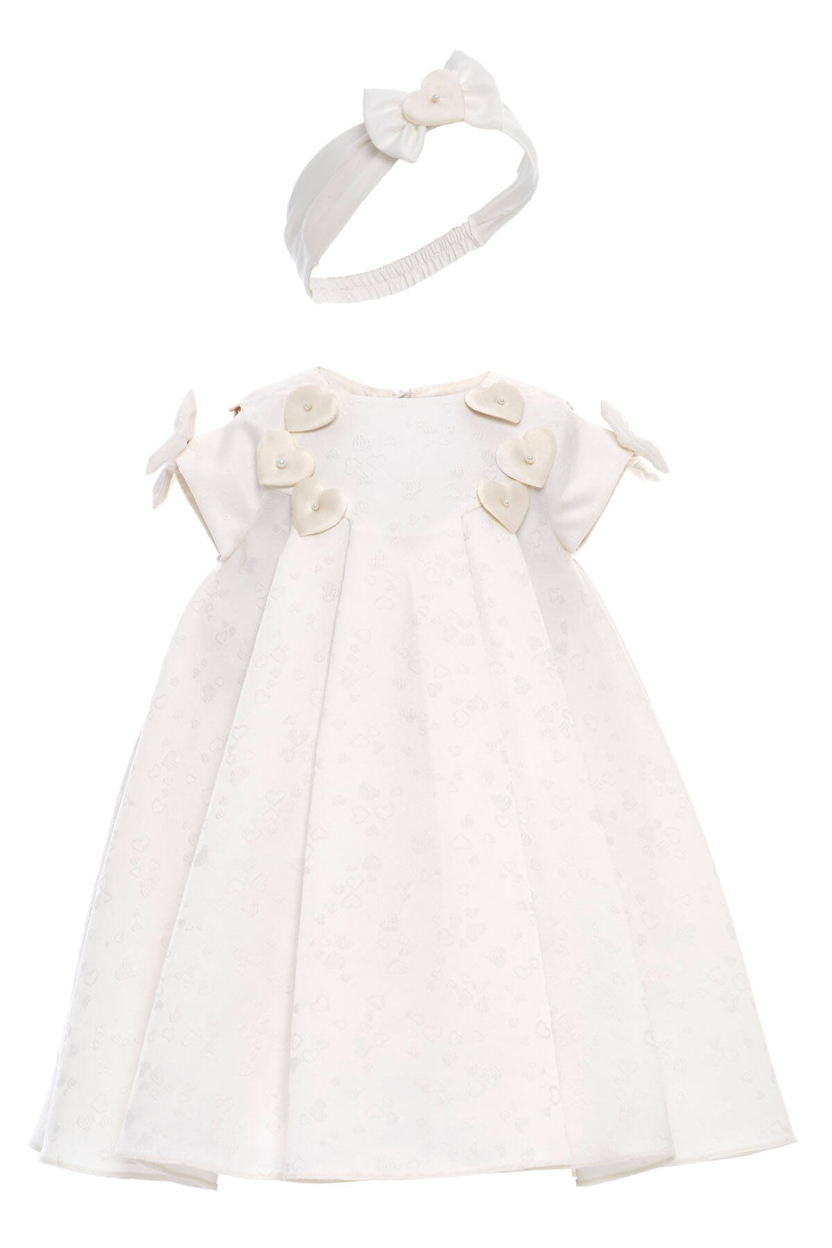 فستان بنات أطفال بلون الإكرو بنقشة القلوب ورباط رأس ٦-٢٤ شهر