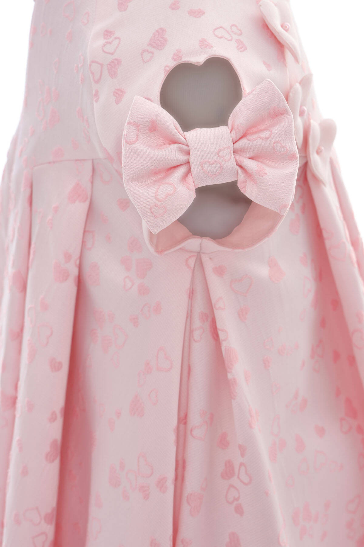 فستان أطفال لطيف، مرح ومفعم بالسحر! يتميز هذا الفستان الرائع بنقشة قلوب ناعمة على تصميم واسع مع تفاصيل مطوية. تتدلى تطبيقات قلوب من الساتان مزينة بلمسات لؤلؤية على الأكتاف والأكمام، مما يضيف ملمساً وجاذبية من كل زاوية. في الخلف، يوجد فتحة على شكل قلب مع فيونكة متناسقة تضفي لمسة مفاجئة مثالية للحظات الخاصة. يُكمل هذا الطقم رباط رأس من الساتان بنقشة قلب متناسقة، مما يجعله مثالياً لأعياد الميلاد، التجمعات العائلية، أو جلسات التصوير التي لا تُنسى.