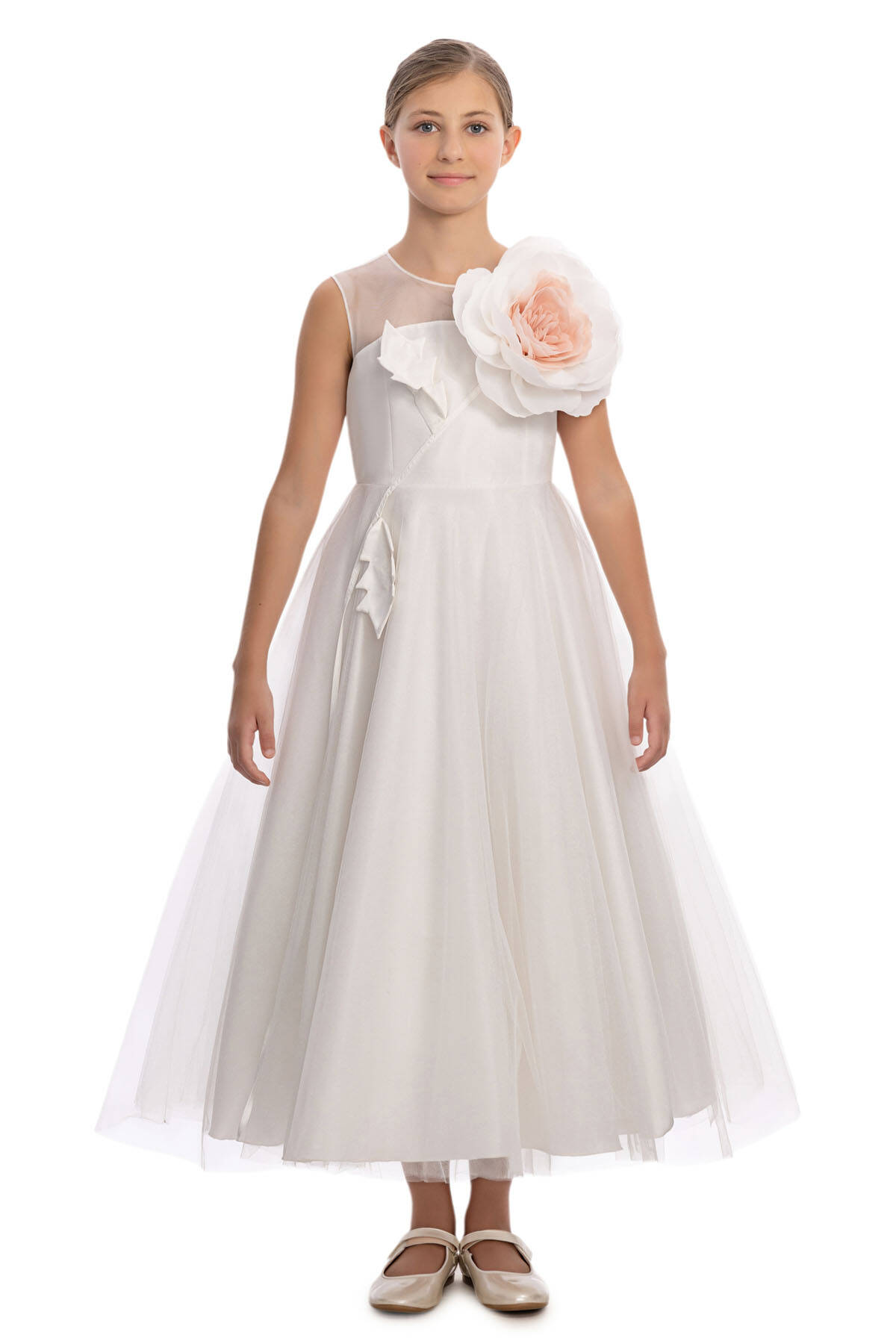 فستان ساحر للمناسبات الأنيقة! يتميز هذا الفستان بدون أكمام بتنورة تول حالمة ذات تصميم واسع ومنسدل، مع ياقة شبكية أنيقة تضفي لمسة عصرية راقية. العنصر الأبرز في التصميم هو الزهرة ثلاثية الأبعاد الكبيرة على الكتف، المصنوعة من بتلات متعددة الطبقات بألوان الباستيل الناعمة، مما يخلق بيانًا مستوحى من الأزياء الراقية. تضيف تفاصيل الأوراق على الصدر لمسة خيالية إضافية. يضمن الإغلاق الخلفي بالشريط المربوط أناقةً وراحةً في الارتداء. مثالي لحفلات الزفاف والمناسبات والاحتفالات التي لا تُنسى حيث تستحق أن تكون نجمة اليوم.