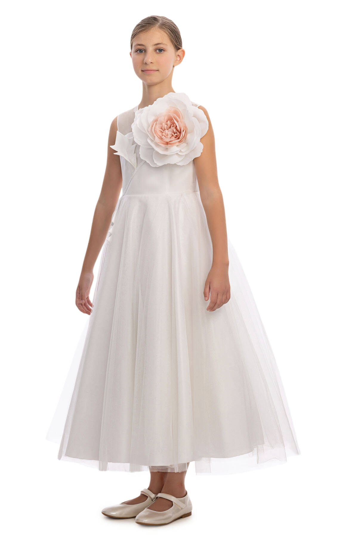 فستان تول زهري للفتيات ٨-١٤ سنة بلون الكريمي