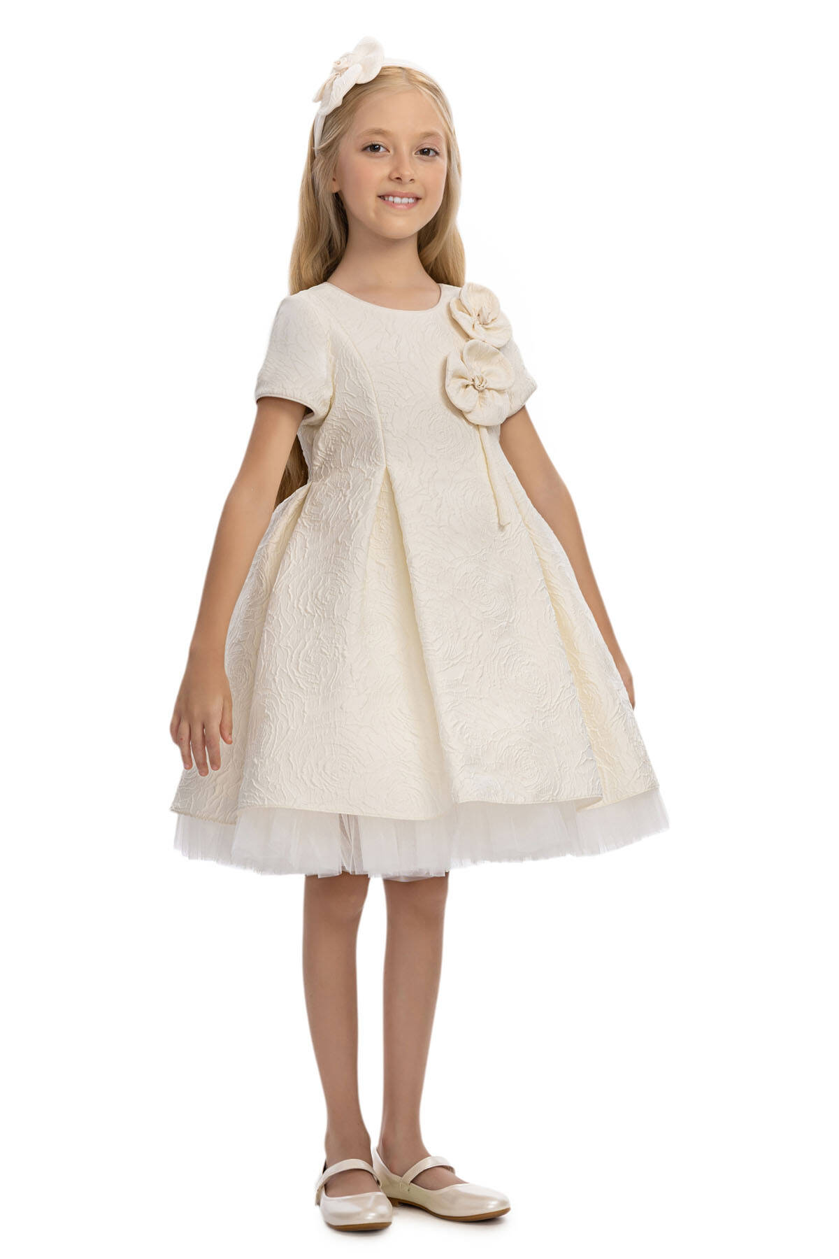 فستان جاكار بنات بلون العاج للأعمار من 3 إلى 7 سنوات