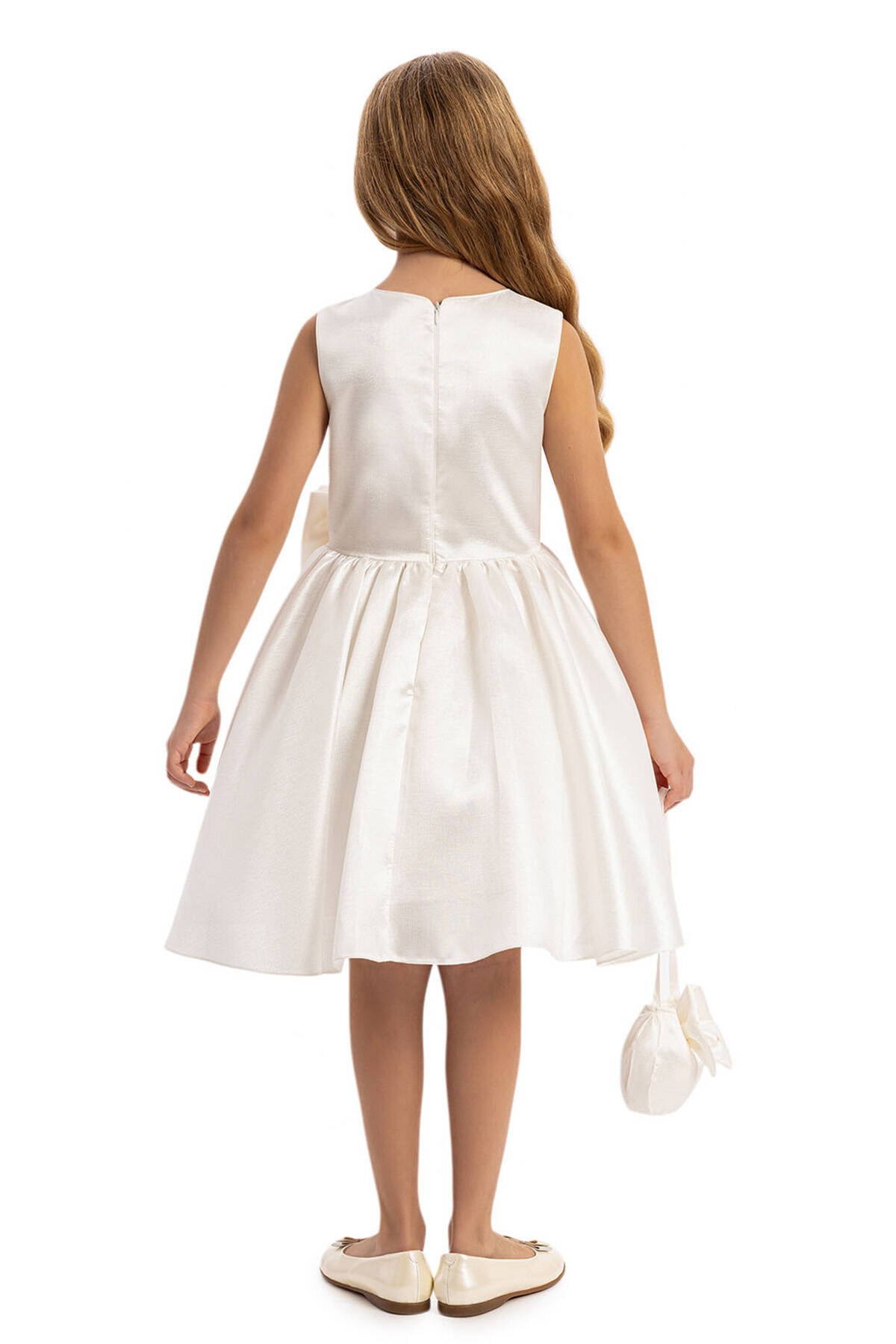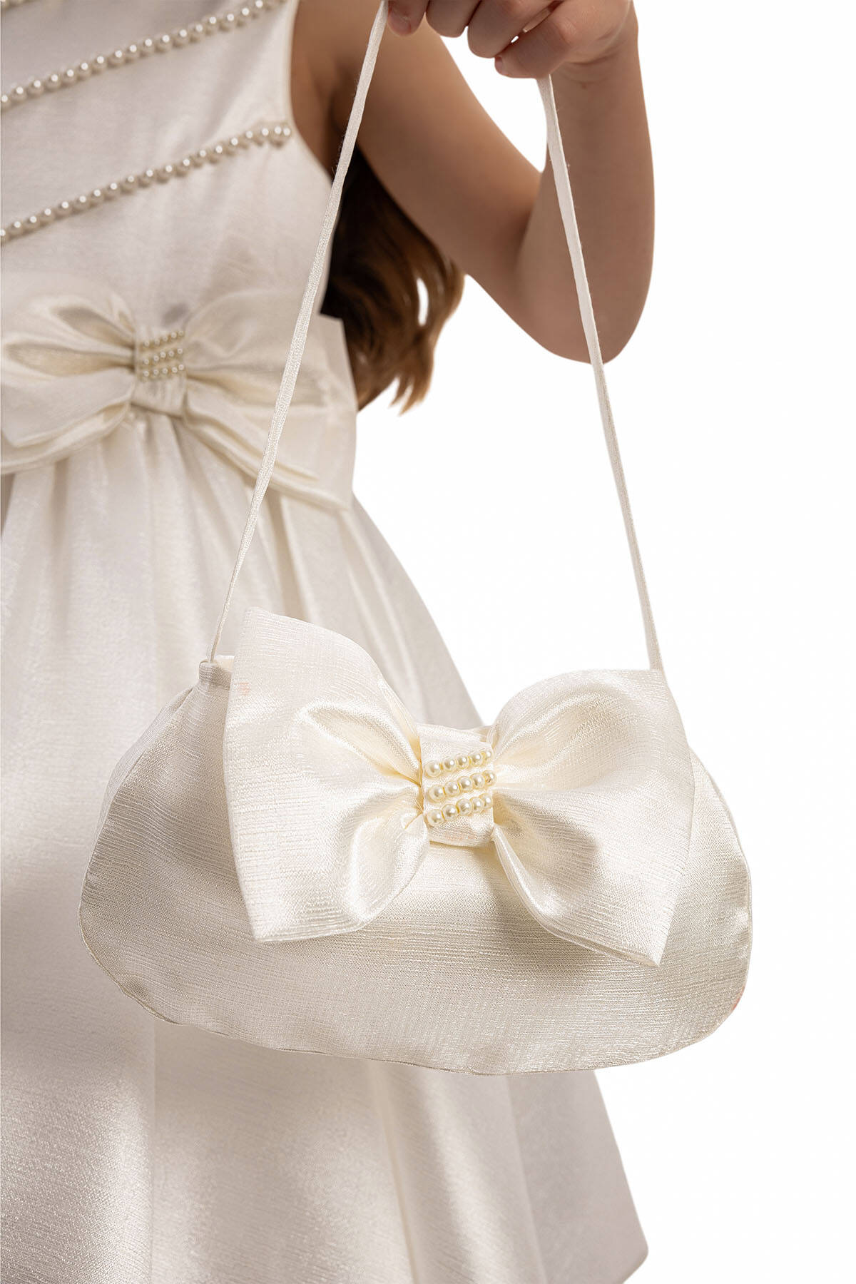 فستان من الساتان بلون بيج فاتح مع حقيبة متناسقة، مقاس 8-14 سنة